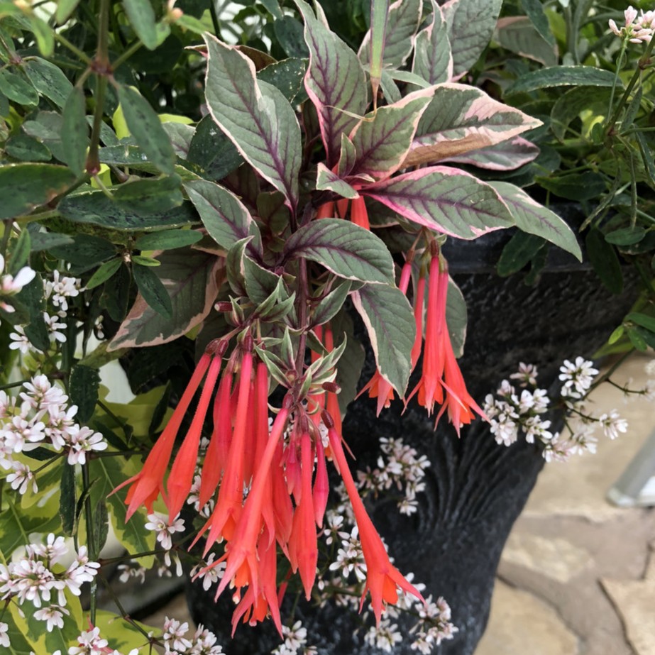 This Proven Selections upright fuchsia boasts a lovely variegated leaf and large trumpet shaped orange flowers. With a growing height of around 2 feet it is a great option for a thriller in your plantings, both containers as well as in the landscape.